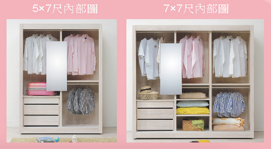 ★809-77-7*7尺推門衣櫃:寬210*深61*高200公分